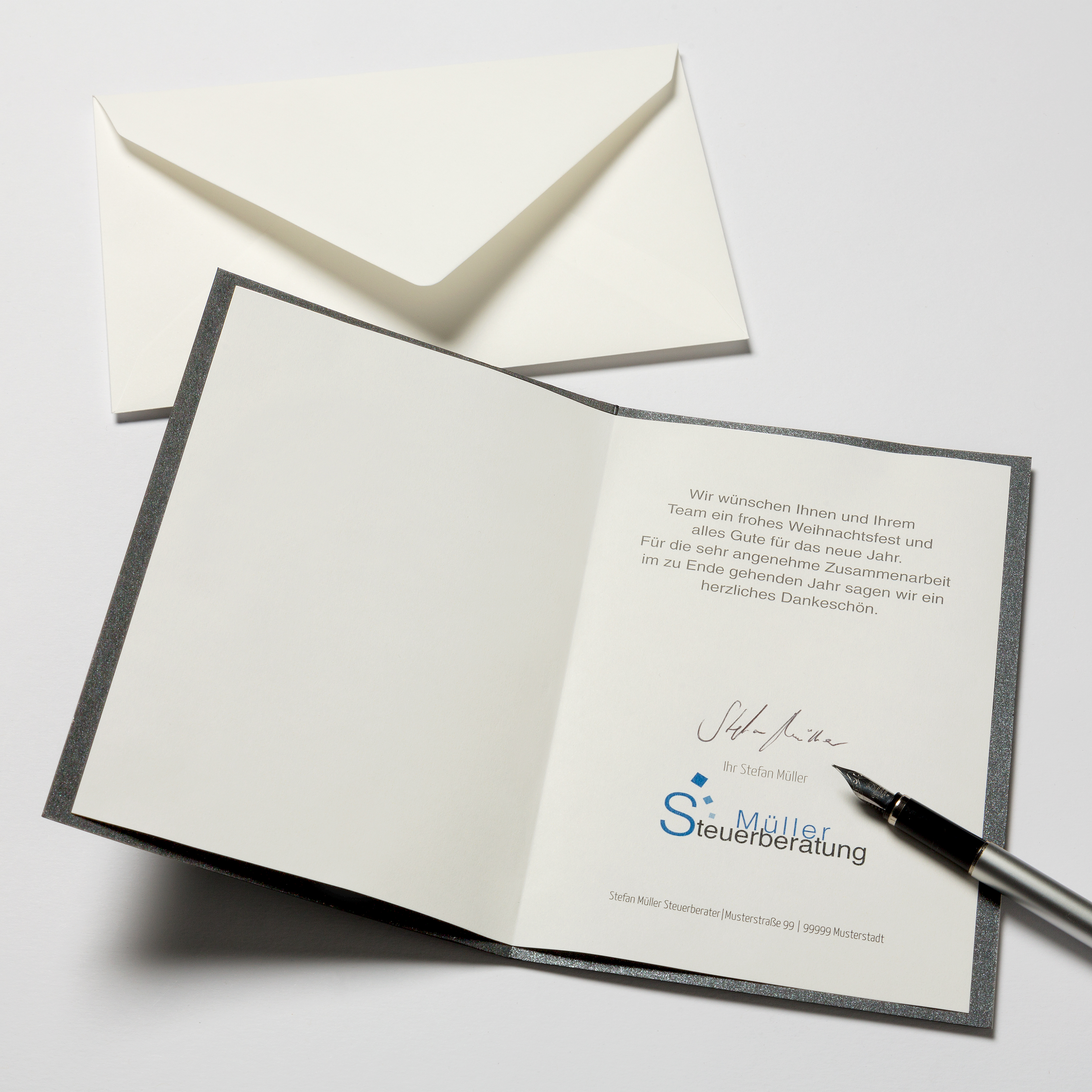 Diese Karte ist eine elegante und ansprechende Wahl, um Geschäftspartnern, Kunden oder Mitarbeitern frohe Weihnachten zu wünschen und ihnen Ihre Wertschätzung auszudrücken.