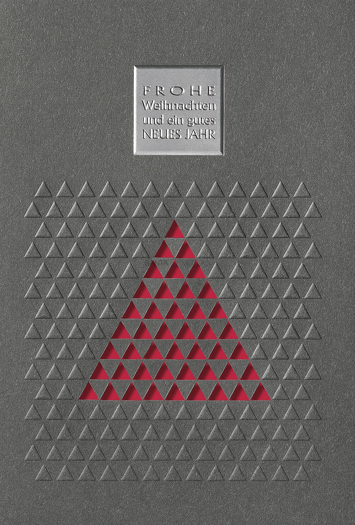 Weihnachtskarte - Neujahrskarte in edlem Anthrazit matt. Durch die aufwendige Stanzung und das in Silberfolie geprägte Emblem, wird diese Karte zum Highlight.