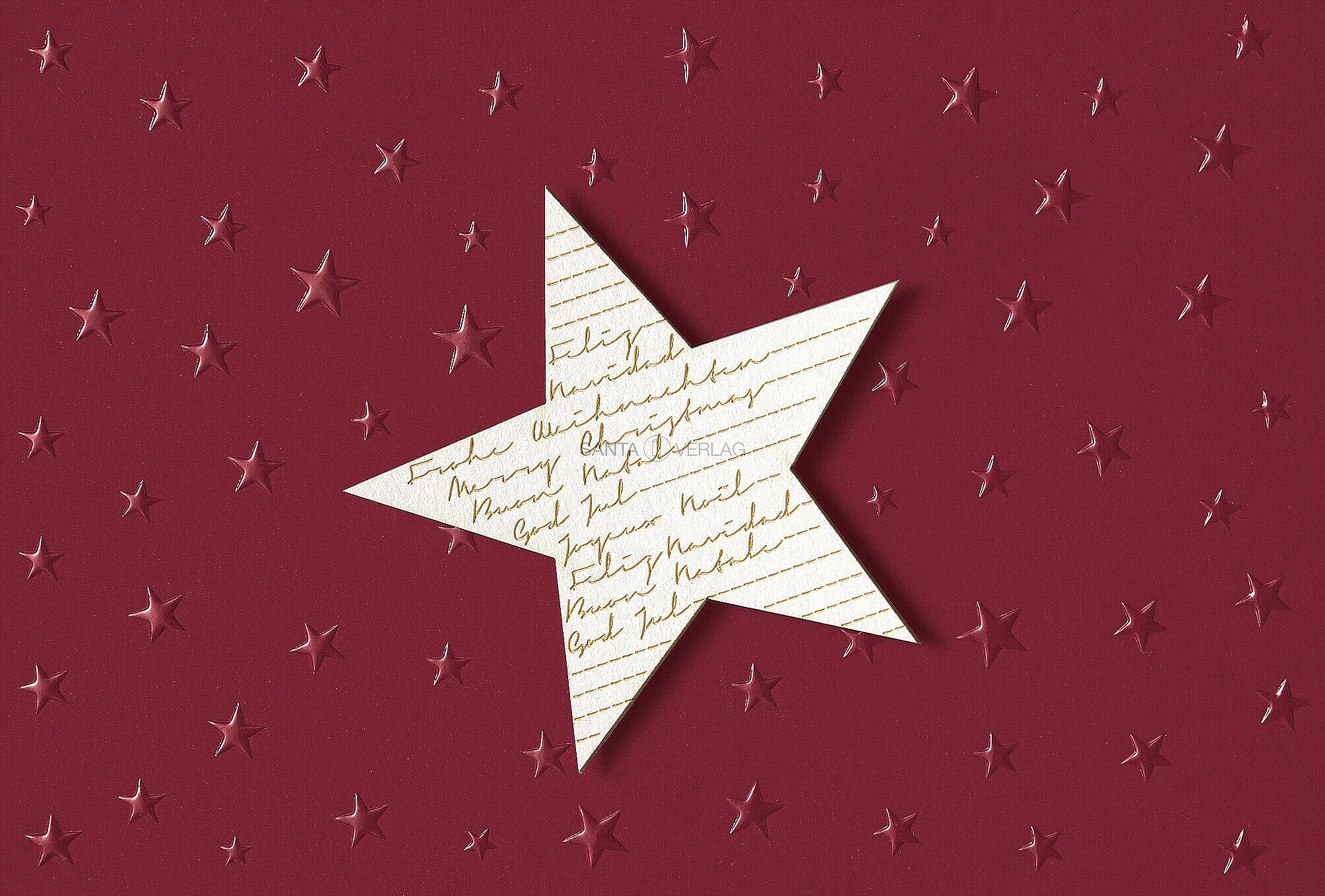 Weihnachtskarten "Stern " auf bordeaux farbenem Feinkarton. Stern in Lasertechnik, wird aufgepatcht.