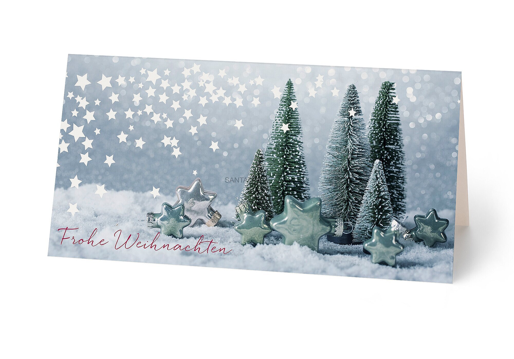 Weihnachtskarte "Frohe Weihnachten". Stimmungsvolle Weihnachtsdekoration in UV-Lackierung.