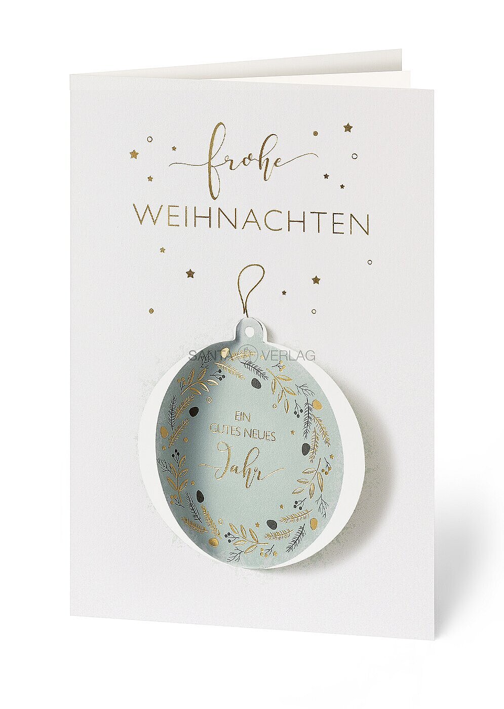 Weihnachtskarte/ Neujahrskarte in reduziertem Design mit vorgestanzter Kugel (Anhänger) zum Auslösen.