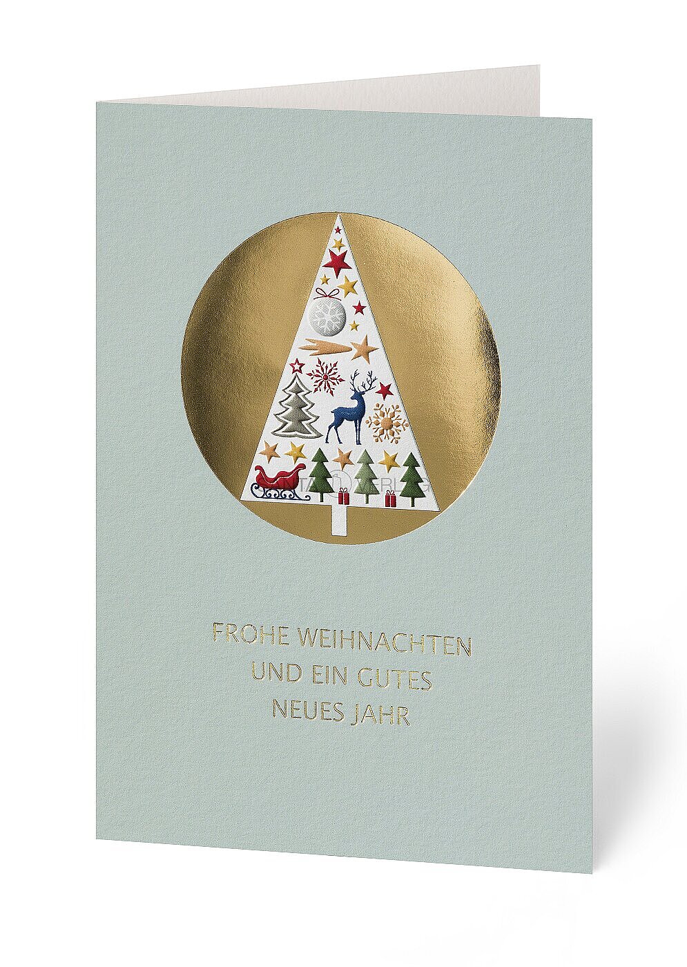 Weihnachtskarte/Neujahrskarte im Materialmix aus Goldfolie-Blindprägung- Spotlack. Die besondere Grußkarte.