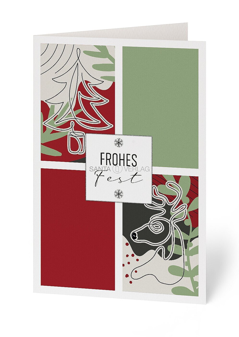 Weihnachtsgruß in klassischem Rot und Grün. 4C-Druck.