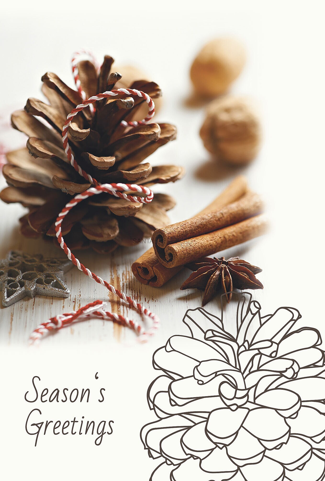 Weihnachtskarte "Season´s Greetings". Traditionelle Symbole in Hochglanz-Lackierung stimmen Sie auf Weihnachten ein.
