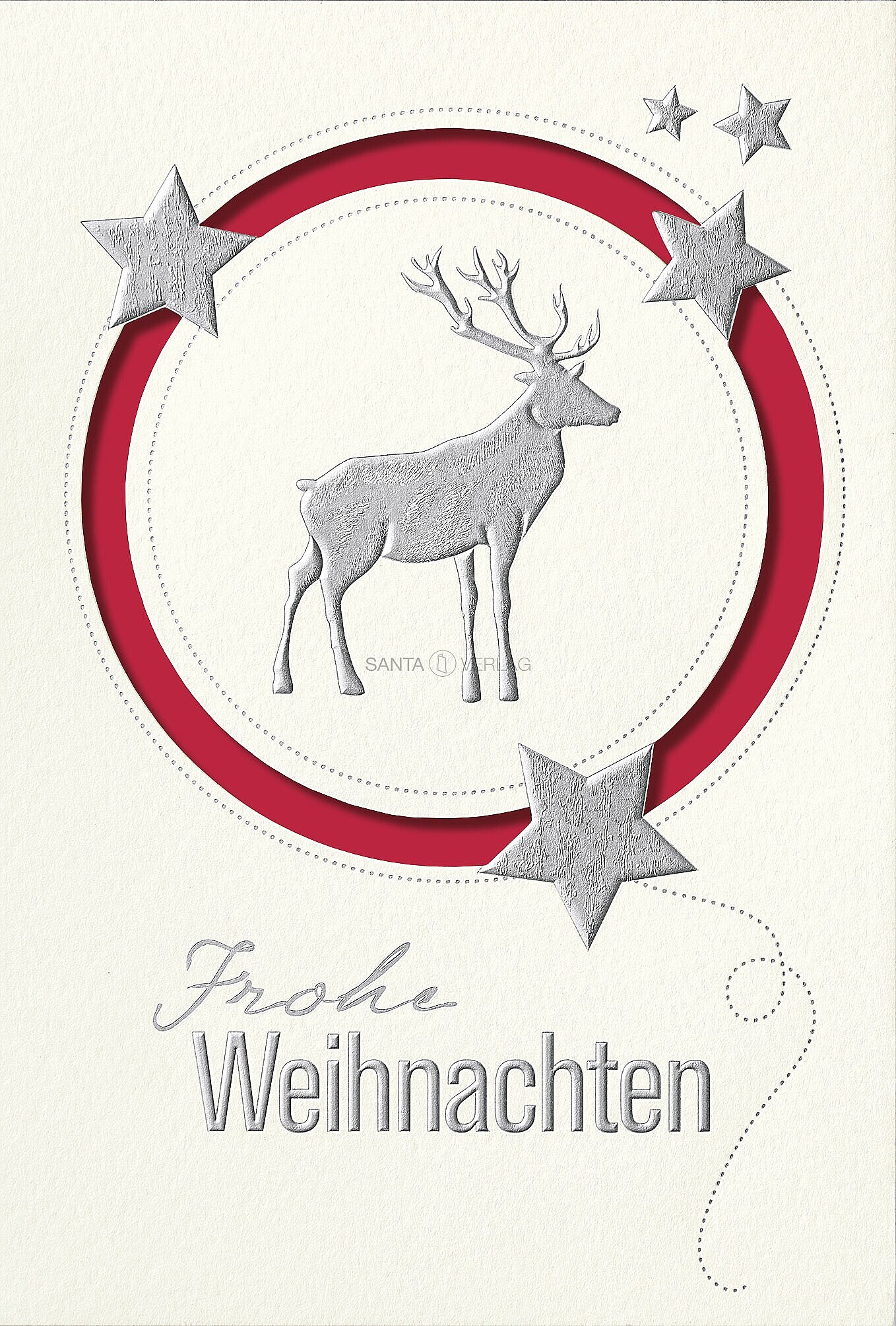 Weihnachtskarten heller Strukturkarton. Die raffinierte Stanzung wird durch eine kräftige Silberfolien-Prägung effektvoll in Szene gesetzt.