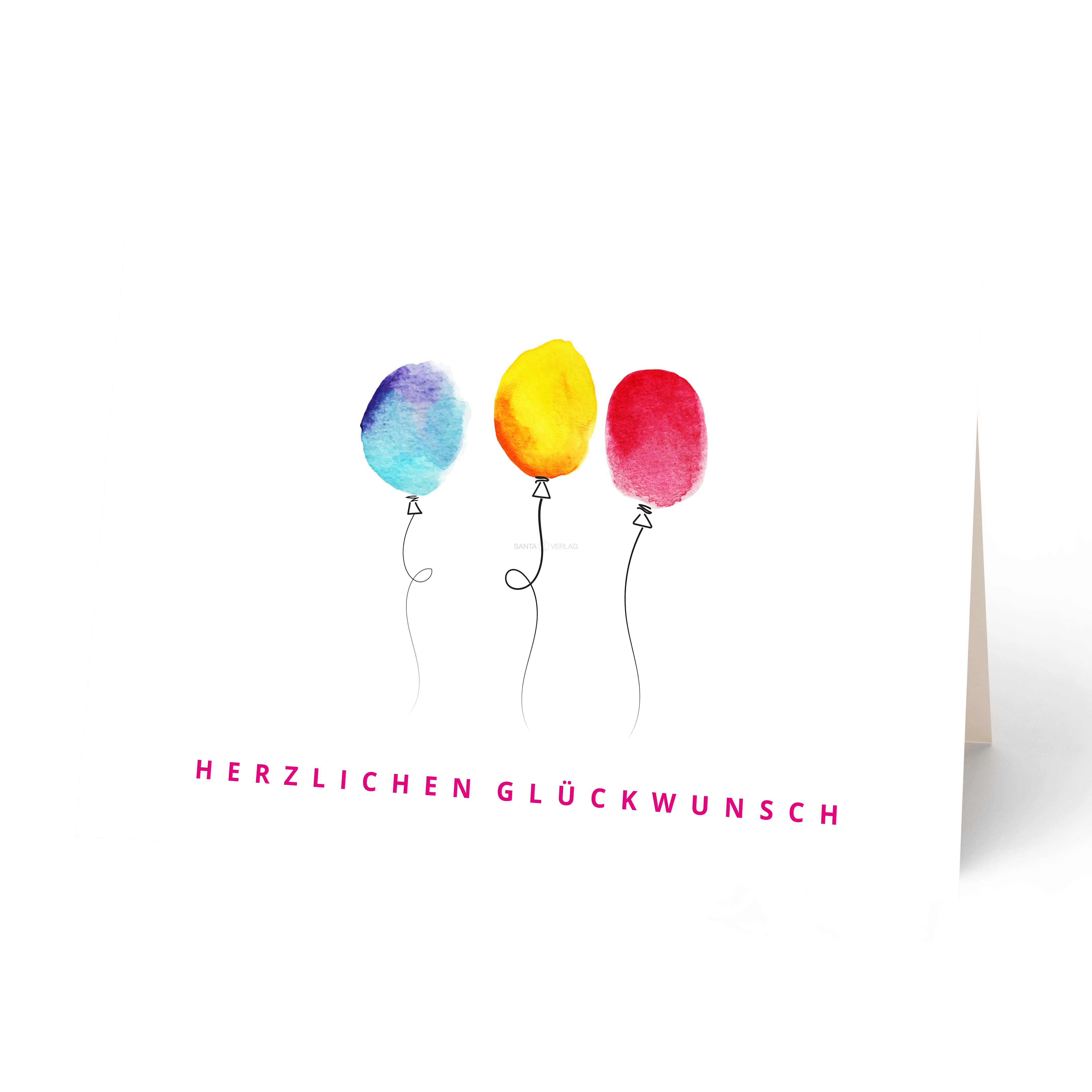 Glückwunschkarte Feinpapier matt mit bunten Luftballons Aquarell