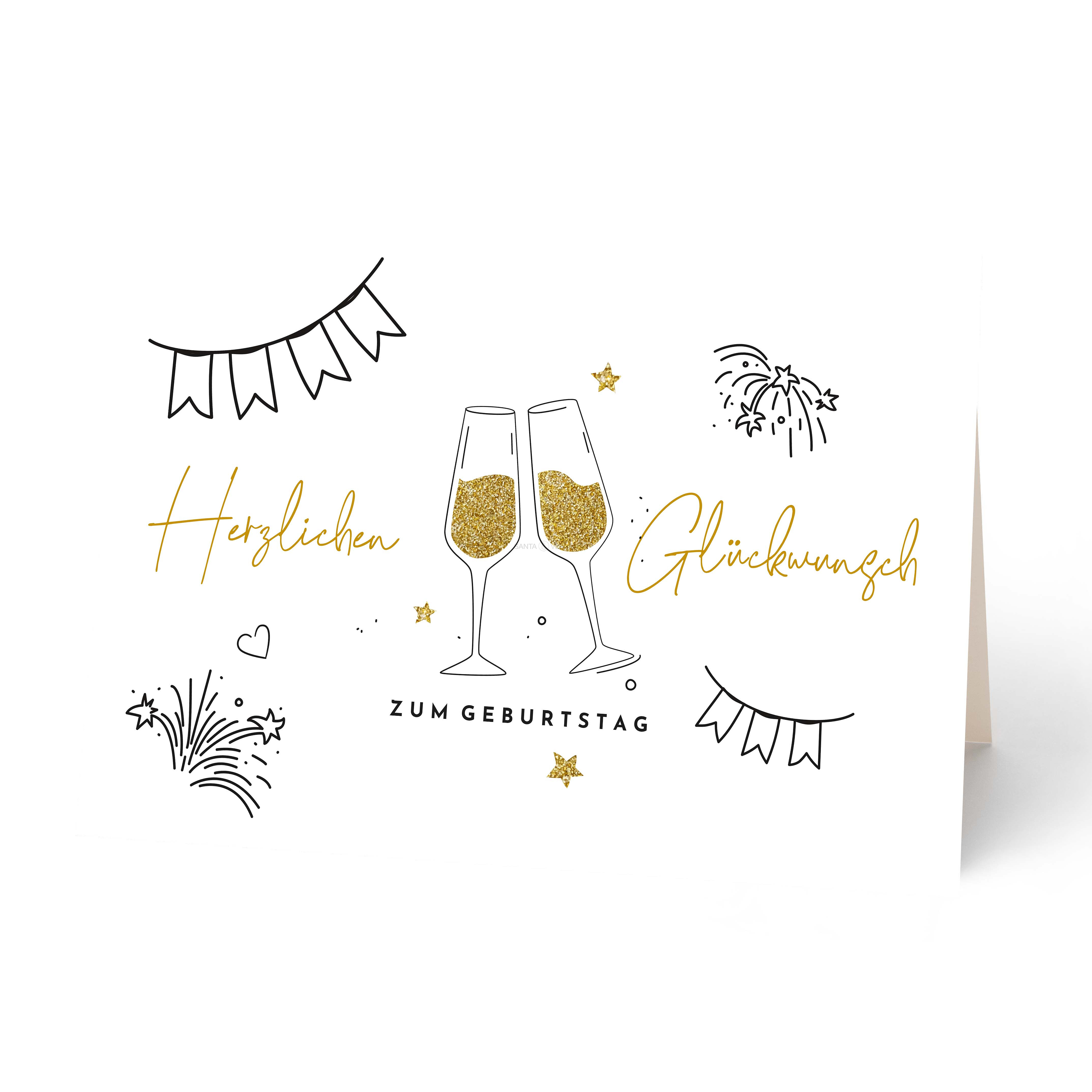 Glückwunschkarte Feinpapier matt mit funkelnden Sektgläsern