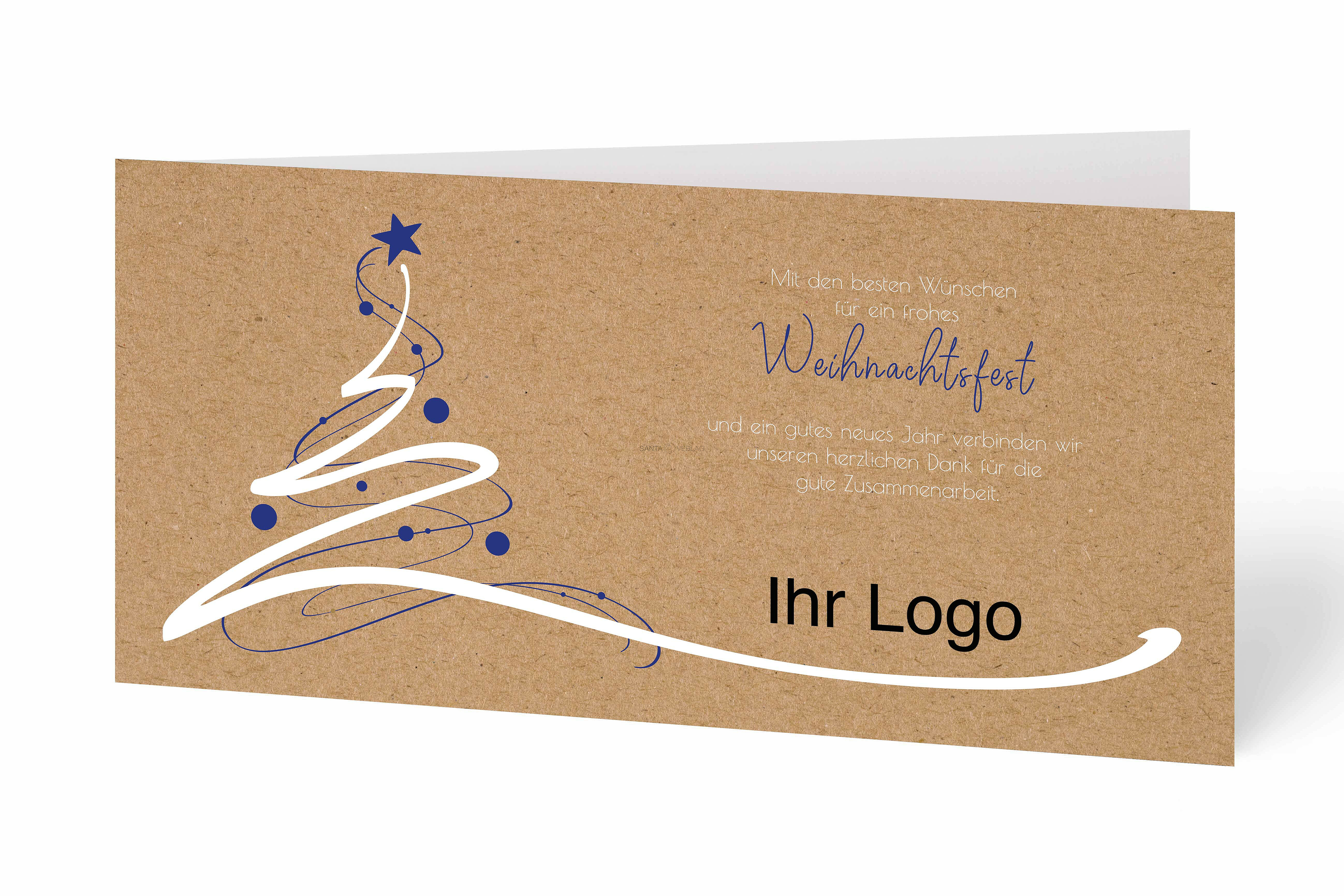 Weihnachtskarte, Weihnachtskarte/Businesskarte mit Geschäftstext, Tannenbaum in weiß/blau