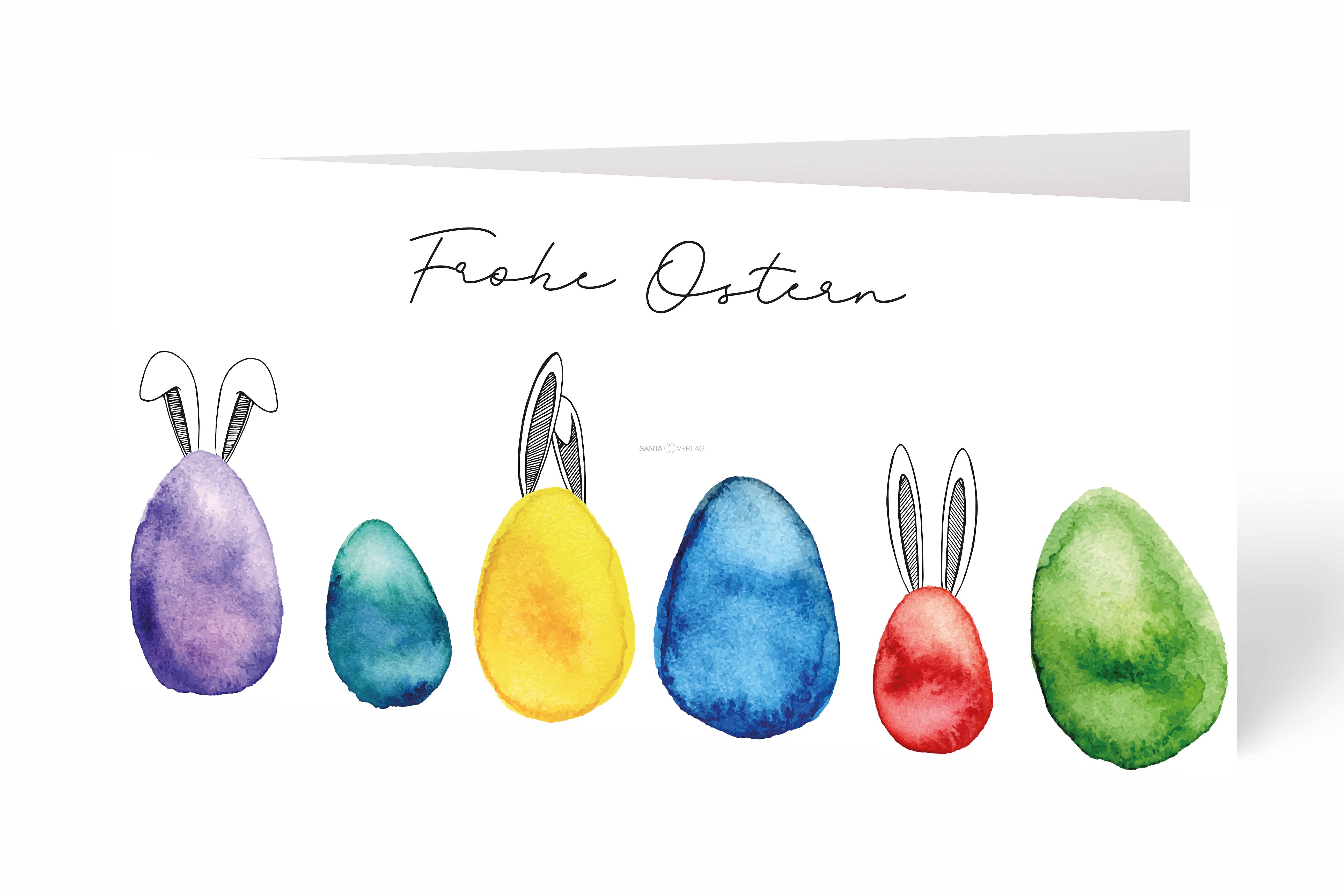 Moderne Osterkarte mit bunt gefärbten Ostereiern