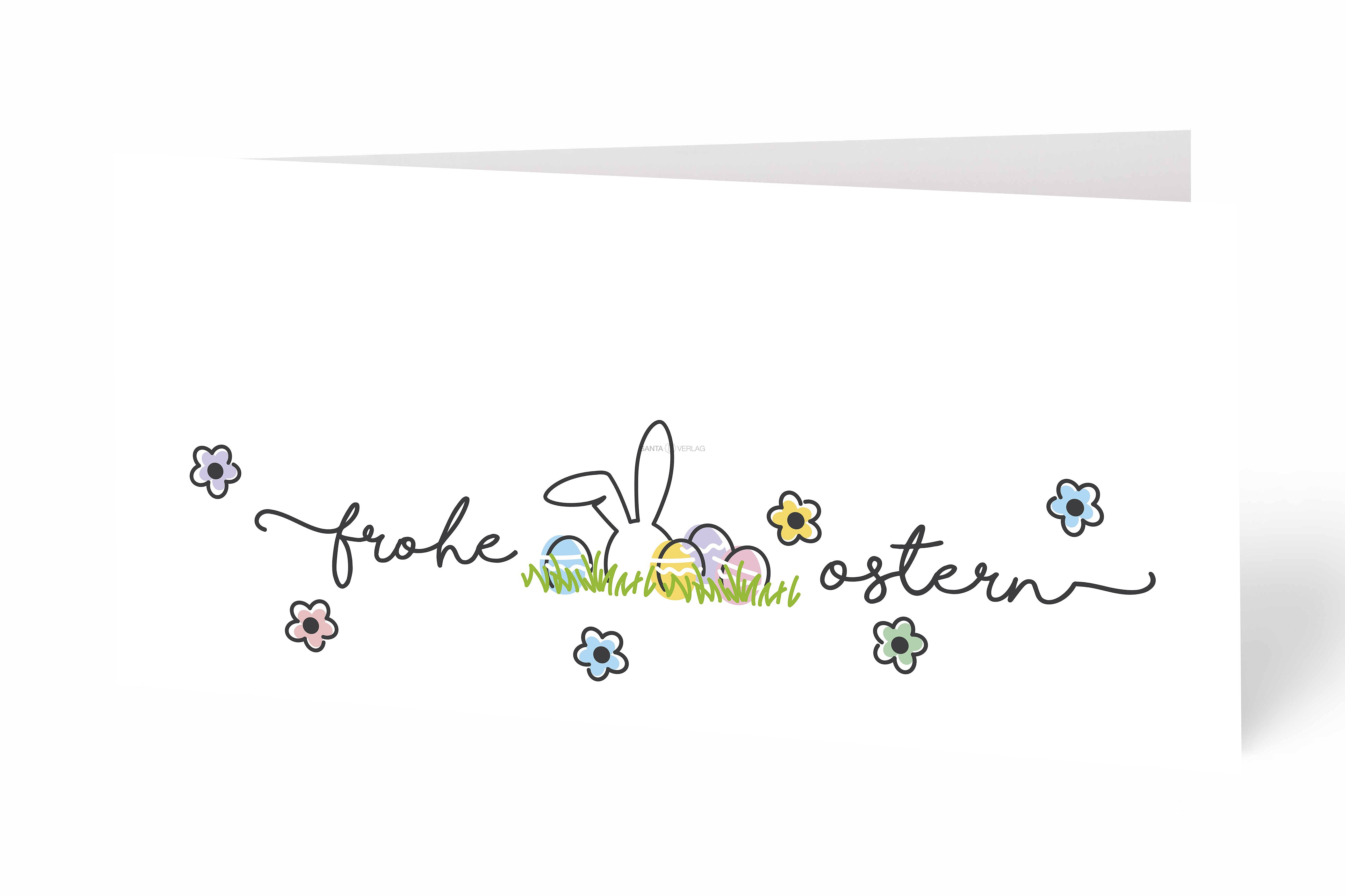 Moderne Osterkarte mit bunten Blümchen und Hasenohren
