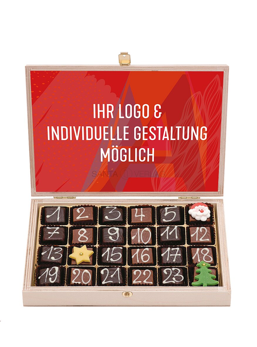 24 hochfeine handgefertigte Nuss-Nougat-Pralinen mit dreierlei Kuvertüre überzogen und von Hand beschriftet ca. 250 g