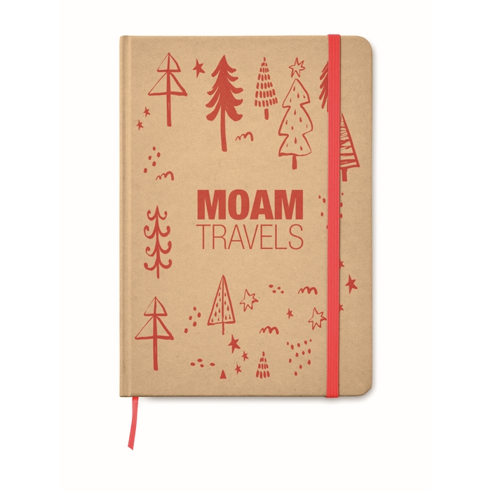 DIN A5 Merkbuch in der Farbe rot mit Hard Cover aus recyceltem Karton. 80 Blatt (160 Seiten) liniertes Papier. Elastisches Verschlussband und Lesebändchen in passender Farbe.